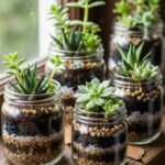 [Image Prompt: A bright, airy kitchen countertop filled with mason jars decorated for spring. Each jar is unique—painted pastels, twine accents, fresh flowers, small potted plants. Sunlight streams through a nearby window, casting soft shadows. The jars are arranged artistically with colorful spring decor, creating a cheerful, inviting scene. The photo is crisp, vibrant, and … [Read more...] about 21 Cute Spring Mason Jar Crafts That Are Pinterest-Perfect
